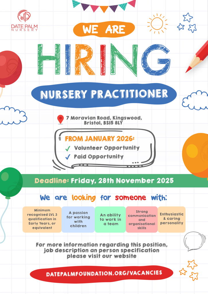 If you are interested in this role and want to apply, please email your CV to nursery@datepalmfoundation.org.